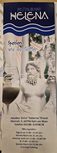 Ein bisschen versteckt in einer Wohngegend in Kahl am Main fanden wir (zwei Frankfurter mit einem Hang zum schönen Kahl) mit der Hilfe von GOOGLE das griechische Lokal „Helena“. Wir waren sehr begeistert. Gutes Essen: Vorspeise „Feta Psiti in Alu-Folie gegrillt“ mit Pita „Knoblauch / Oregano“ war der Hammer -- unsere Hauptspeisen „Korfu“ und „Helena“ waren super lecker und absolut authentisch gewürzt (wie auch anders, wenn die Besitzerin Katerina stolz darauf hinweist eine echte Griechin zu sein). Die Portionen waren reichhaltig, aber niemand muss dort heimlich und verstohlen nach einem „Doggy Bag“ fragen. Beim Abräumen der Teller bekamen wir sofort angeboten, das übrig gebliebene Fleisch zum Mitnehmen eingepackt zu bekommen. „Wäre ja sonst schade darum“. On top: Sehr nettes Personal und auch nette weitere Gäste, die sich sofort als Katerina’s Stammgäste geoutet haben. Wir sind im Jahr öfter mal in Kahl und das „Helena“ werden wir sicherlich bald und gerne...