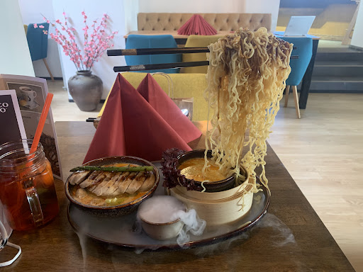 I am really glad I did. I got the flying noodles with chicken, Thai basil tea and a coke light. I really enjoyed all of it. If youāre going to drink the tea, make sure you squeeze the lime and fruits as well as mix it up. The way it is delivered is very sweet and once stirred and fruit squeezed it makes it cold and adds the acid to break the sugar. The chicken says spicy and some parts were but not what a Thai, American, Korean or something would consider spicy. Also, they...