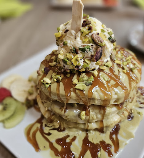 I got pistachio pancakes and it was absolutely AMAZING! They are very generous with the pistachios, the pancakes are fluffy, and it isn't overly sweet.