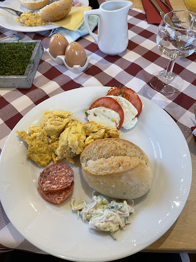 Wir hatten uns aufgrund der zahlreichen positiven Bewertungen schon auf das tolle Frühstück auf dem Bauernhof gefreut und scheinen leider keinen guten Tag erwischt zu haben. Die beiden jüngeren Bedienungen wirkten sehr unmotiviert. Erst auf Nachfrage gab es einen Latte Macchiato (erstmal wurde der Filterkaffee auf den Tisch gestellt), der Hund durfte nur auf die Terrasse und bekam dort auch keinen Napf mit Wasser angeboten, obwohl es schon sehr warm war auf der Terrasse. Der hauseigene sehr freundliche Hund durfte sich sowohl im Café als auch draußen frei bewegen (es sei ihm auch von Herzen gegönnt). Unsere einjährige Tochter bekam auch keinen Hochstuhl, was woanders schon automatisch angeboten wird. Zum Glück kann sie inzwischen auch schon gut auf einer Bank sitzen. Dann wurde uns ein Korb mit überwiegend hellen Brötchen hingestellt. Auf freundlicher Nachfrage unsererseits, ob es möglich wäre diese gegen Körnerbrötchen auszutauschen, wurde wir freundlich aber bestimmt darauf hingewiesen, dass wir diese im Vorfeld hätten vorbestellen müssen, da wir ja sehr spät an wären mit dem Frühstück (hatte der Chefin jedoch am Vortag Bescheid gegeben, dass wir später zum Frühstück kommen würden und da wurde uns deutlich signalisiert, das dies kein Problem sei). Obwohl wir normal keine hellen Brötchen essen und privat auch versuchen Weizenprodukte zu vermeiden, wurde uns hier leider keine Alternative angeboten. Da es schon sehr warm auf der Terrasse war, hatten wir jede Menge Fliegen am Tisch, was meinem Mann zunehmend den Appetit verdorben hat und uns neben dem Gefühl des Abgefertigtwerdens zu einem schnelleren Aufbruch motiviert hat. Auf dem Bauernhof muss man sicherlich auf Fliegen vorbereitet sein, aber auch hier fehlten die Lösungsansätze (z.B. Fliegennetzglocken über dem Aufschnitt). Gezahlt haben wir für weniger Angebot übrigens den selben Preis. Hier wurde scheinbar zu sehr auf das Touristenprinzip „schnell abgefertigt und dann sehen wir die nie wieder!“ gesetzt. Schade, dass ausgerechnet wir in unserem schon zeitlich begrenzten Kurzurlaub hier enttäuscht wurden und auch das offene Ansprechen die Situation für uns nicht...