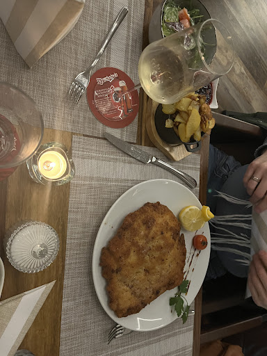 Wir gaben dem Laden eine neue Chance. Wir bestellten Schnitzel Wiener Art, das bestelle ich meistens und es ist bisher immer gut gemacht. Diesmal jedoch bekam ich das Schnitzel mit Kartoffeln OHNE die gewohnte Salatbeilage. Es dauerte, bis der Service wiederkam, wir fragten nach und bekamen die Antwort, das Schnitzel wäre im Angebot und dann würde es ohne Salatbeilage serviert werden. Immerhin bot man mir Sauce an.