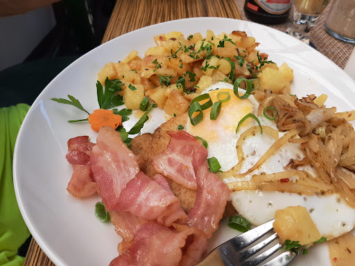 "2 Sterne" Das Essen ist mittelmäßig. Geschmacklich ist es gut, aber Preis-Leistung ist eher "zu teuer". Dabei ist es egal, ob es Salate, Schweinemedaillons oder Schnitzel sind.