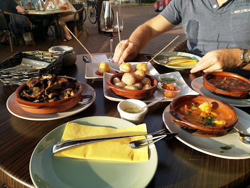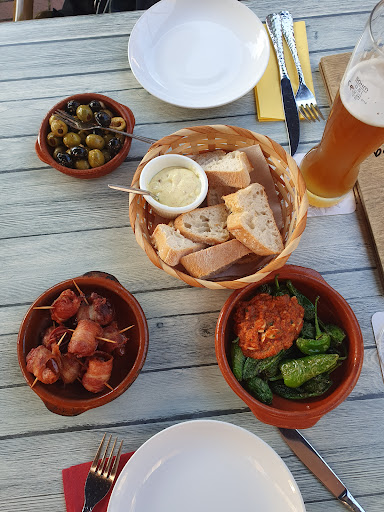Read moreWir waren mit 9 Personen am Samstag um 19:15h dort und hatten einen Tisch reserviert. Gut so, das Restaurant war sehr voll. Der Service war höflich, aber die GetrĂ€nke kamen nach und nach schleppend. SpĂ€testens nach 20 min. sind die Speisen bestellt gewesen, auf die wir uns freuten. Dann fing das Elend an. Es verging eine 1/2 Std., es verging 1 Std., auf Nachfrage bekamen wir zur Antwort, "...es dauert noch". Unvorstellbar, da das Restaurant ja nur noch max. zur HĂ€lfe gefĂŒllt war. Nach 1 1/2 Std. vertrösten platzte uns dann der Kragen und wir wollten gehen. Man versicherte uns, dass die Speisen nun zĂŒgig geschickt wĂŒrden und bot uns ein GetrĂ€nk fĂŒr jeden auf's Haus an. Nach einer weiteren 1/4 Std. hatten dann endlich alle ihr Essen, aber teilweise lauwarm. Der Serrano nicht frisch abgeschnitten, sondern aus der Verpackung (Discounter?) genommen, 51. + 64. blass, also zu gut wie gar nicht frittiert, 4b Aioli nicht geliefert, die 45 nachgeliefert, weil vergessen! Geschmacklich alle Gerichte einigermaĂen gut. Trotz FachkrĂ€ftemangel darf so etwas nicht vorkommen, die KĂŒche muss total ĂŒberlastet gewesen sein, oder alle haben völlig unstrukturiert neben sich gestanden. Es sind ja Tapas, die bestellt wurden, also ohne viel Aufwand zubereitet, selbst wenn frisch gemacht, dĂŒrfte Einiges vorbereitet sein, daher ist diese Dauer nicht nachvollziehbar. Wir sind schon öfter hier gewesen, auch wenn es voll war, doch seit diesem Abend ĂŒberlegen wir uns...