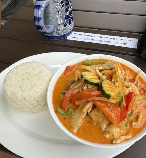 Read moreSehr gutes rotes Curry, was auch wirklich scharf gemacht wurde. Was mich jedoch gestört hat: Als ich nach Sambal Oelek / Chilli Sauce fragte, sagte die Frau: “Ist scharf genug, erst probieren”. Ich fragte nochmal: “Haben Sie Chilli Sauce?” und sie sagte “Passt nicht zu Curry”. Erst nach dem dritten Fragen bekam ich dann welche und konnte Sie mir auf den Reis schmieren. Ich esse mehrmals die Woche (sehr scharfes) Thai Curry, bin jeden Winter in Thailand und weiß genau, was ich zu meinem Curry möchte. War sicher nett gemeint von ihr, weil viele eventuell zum ersten Mal zum Thai gehen, aber ich hätte es besser gefunden wenn Chilli Sauce auf dem Tisch steht (wie in anderen Thai Imbissen) bzw. dem Gast die Entscheidung überlassen wird, was er wo drauf geben will! Dennoch Empfehlung, war...