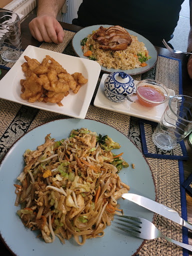 Read moreHatte Papayasalat, Tom Kha Gai und ein Entengrricht mit rotem Curry und eine scharfes Schweinegericht mit Bohnen und Brokkoli . Gebackene Banane als Nachspeise. Geschmacklich hat der Kovh meinen Nerv gut getroffen, es ist jedoch weniger scharf als die Originale, aber das Ist vollkommens vernünftig hierzulande. Von meinen Begleitung kostete ich von sehr knusprigen Sommerrollen, die mehr Füllung vertragen hätten können, aber lecker waren. Mein Tom kha Gai hätte schärfer sein dürfen, war aber sehr gut und die Zutaten sehr frisch. Der Papayasalat ist ein Gedicht! Spitze! Habe mich kurz zurückversetzt gefühlt im Schneidersitz auf irgendwelchen Fliesen zu sitzen... an der Ente war miretwas Zuviel Panade aber keine Knorpel oder Fettbänke. Das Schwein war super aber hätte schärfer sein können! Ich habe die Tischsaucen vermisst und Singha und Chang war ausverkauft. Jedes Gericht wird einzeln zubereitet, daher kann es zu Verzögerungen kommen. Unbedingt zu empfehlen! Echte Thaifood Küche! Leider ist dort essen etwas ungemütlich aber sonst gutes Essen in eher kleinen Portionen...