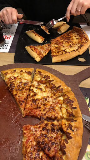 Wir waren mit zwei Erwachsenen und fünf Kindern dort, um den Ferienanfang zu feiern. Unsere Erfahrungen waren leider sehr gemischt: Das Essen war hervorragend wie immer. Die Pizza genau so, wie man sie kennt und erwartet. Die Vorspeisen ebenfalls ganz ausgezeichnet. Den Service haben wir leider als weniger gut wahrgenommen. Zwei der Kinder sind noch jünger. Von den Ausmalbildern, die Pizza Hut hat, erhielt nur eines der beiden eines und das auch erst auf Nachfrage. In anderen Restaurant kenne ich es als Standard, dass der Mitarbeiter bei der Begrüßung dies aktiv anbietet. Zwei der Mitarbeiter haben so laut in unfreundlichem Ton miteinander interagiert, dass es im ganzen Lokal zu hören war. Von 7 Getränken bekamen wir eines falsch geliefert, obwohl bei der Bestellung von der Mitarbeiterin alles korrekt wiederholt worden war. Den Salat für die King Caesar hatten wir separat bestellt, damit man eventuelle Reste besser mitnehmen und wieder erwärmen kann. Das wurde auch von der Küche ganz hervorragend in einer Schüssel und einem Schälchen ausgegeben. Als wir dann zum Schluss nach Behältnissen für den Salat und die Sauce fragten, erhielten wir genau eine Kunststoffschüssel. Das führt dann die Idee, dass der Salat möglichst knackig bleibt, ad absurdum. Nachdem wir die Getränke und das Essen erhalten hatten, kam niemand mehr an den Tisch, um nach weiteren Wünschen zu fragen. Das geplante Dessert fiel also ins Wasser. Wenn ich über 150€ für Pizza (!) ausgebe, dann erwarte ich einen besseren Service. Da es nicht das erst Mal ist, dass hier der Service erheblich schlechter als das Essen ist, werden wir hier nicht noch einmal vor Ort essen. Meine Empfehlung lautet, sich das Essen abzuholen und daheim mit Freunden und/oder der Familie zu essen und sich so auch gleich die überteuerten...
