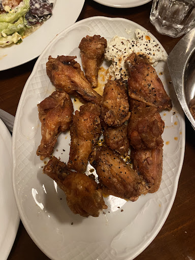 Das Essen: Das HĂ€hnchen ist mir persöhnlich zu fettig, das Fleisch geschmacksneutral aber dafĂŒr zart. Die Haut war dafĂŒr super cross und hatte die richtige SchĂ€rfer (mittel). Auf dem sonst leeren Teller befand sich beim Servieren schon eine relativ groĂe FettpfĂŒtze, sodass es beim Abstellen auf den Tisch tropfte. Des Weiteren hatten wir Chicken Wings bestellt, die zwar cross aber leider viel zu trocken waren. Die Pommes wurden zwar sehr spĂ€t an den Tisch gebracht, waren aber dafĂŒr gut.