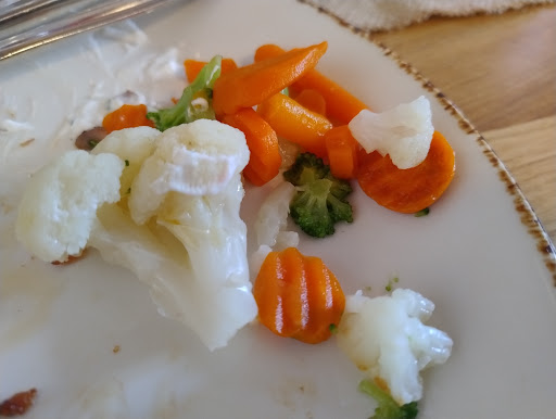 Ein weiterer Kritikpunkt war der Service. Nachdem eine benutzte Gabel auf Wunsch mit dem Salatteller abgeräumt wurde, erhielten wir trotz Bitte keine neue Gabel. Das Essen selbst war durchschnittlich, ohne besondere geschmackliche Höhepunkte. Der Zaziki war spärlich und das Gemüse war offensichtlich TK-Ware.