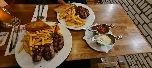 Somit sind wir an einem verregneten Abend in eben jenes Lokal gegangen und haben auch ohne Reservierung direkt einen freien Tisch im gut besuchten Laden bekommen. Soweit, so gut. Bis hierhin alles gut. Auch die Getränke waren relativ schnell am Tisch, die Bestellung schnell aufgenommen und dann begann der Abend zu kippen, denn ab Aufnahme der Bestellung bekam unser Tisch keine Beachtung mehr. Als nach 50 Minuten (!) dann immer noch nicht der Vorspeisensalat auf dem Tisch stand wurde von uns dann doch nochmal beim Service nachgefragt und siehe da: unser Bon sei verloren gegangen. Kann passieren. Aber Entschuldigung? Fehlanzeige. Nach einer Stunde stand dann der Salat auf dem Tisch, nach 75 Minuten die bestellten Steaks. Und das Aussehen richtig gut. Aber auch hier wurde zumindest ich wieder mehr als enttäuscht. Denn die Küche hatte leider die Garstufen der Steaks vertauscht. Aufgrund der hohen Wartezeit zuvor und dem daraus entstandenden Hunger haben wir hier von einer Reklamation abgesehen und im Nachhinein nur dem Service darüber informiert. Reaktion? Fehlanzeige. Noch nicht einmal eine Entschuldigung. Sollte man definitiv besser lösen und zumindest Verständnis für den Gast aufbringen. Nach dem bezahlen der nicht gerade preiswerten Rechnung, bei den Steaks in zufriedenstellender Qualität auch gerechtfertigt, bei uns eben leider nicht, sind wir dann nicht mal freundlich verabschiedet worden, sondern der Service ist einfach an den nächsten Tisch gewechselt.