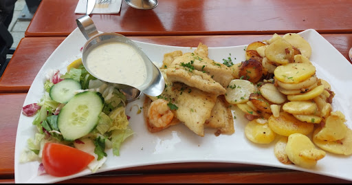 Read moreWir haben einen Tisch in der vollen Sonne zugewiesen bekommen, obwohl mehrere Tische im Schatten frei waren. Auf unsere Frage hin, ob wir uns umsetzen können, wurde uns von der Bedienung schnippisch mitgeteilt, dass wir aufhören sollen zu meckern, es wird ja auch gleich zu regnen anfangen. Als hinter uns der Tisch im Schatten frei wurde, haben wir uns mit den Getränken umgesetzt, weil es in der Sonne, besonders für den Hund, unerträglich heiß wurde. Ab da an wurden wir nicht mehr beachtet, das Essen wurde uns unfreundlich von jemandem übergeben, der im Folgenden nicht mehr an den Tischen zu sehen war. Unser Tisch wurde ewig nicht abgeräumt. Eigentlich hatten wir noch einen Nachtisch gewollt, aber das hatte sich erledigt, nachdem die Bedienung endlich den Tisch abräumen kam, wir sagten, dass wir gern noch einen Nachtisch hätten und zur Antwort bekamen, dass sie erstmal abräumen würde. Anschliessend war sie wieder „abgetaucht“. Wir haben dann gezahlt, nachdem wir rufen mussten, dass wir zahlen wollen. So eine unerfreuliche Erfahrung habe ich in meinem Leben noch nicht gemacht. Ach, und noch vor der Getränkebestellung hat sie gemeint, sie wäre auch schon wieder froh, wenn wir wieder weg sind. Da wollte ich eigentlich schon gehen, habe mich aber den anderen zu Liebe zusammengerissen. Das macht man leider viel zu oft. Die Bratkartoffeln waren übrigens auch lappig und Spinnenweben machen sich nicht von allein weg. Vielleicht wäre die Bedienung mit solchen Aufgaben besser befasst, als mit Gästen, die ihren Lohn bezahlen. Mir hat jeder Cent der sechs Euro Trinkgeld weh getan. Einen Stern gebe ich für die Anwesenheit von...