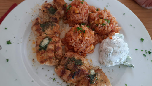 Read moreSorry, netter Kellner, habe auch Trinkgeld gegeben, kann nichts schlechtes zu den Menschen dort sagen, aber das Essen ist nun auch mal ein Kriterium. Gibt ja viele hier die schreiben "super leckeres Essen" aber habt ihr schon mal bei einem echt guten Griechen gegessen? Oder sogar mal in Griechenland? Egal wie klein oder abgelegen ein Restaurant dort ist? Also das Erste, es gab nach dem Essen keinen Ouzo. Huh. Habe ich noch nie erlebt. Vielleicht hat der Kellner es auch einfach nur vergessen. Zum Essen: Grillteller, besteht aus einem Fleischspieß, sehr zäh, einem sehr köstlichen aber auch sehr kleinen Lammsteak, so etwa 30 bis 40 Gramm an einem Knochen, und etwas das sich Gyros nannte, aber damit nichts zu tun hatte. Es war ein kleiner Haufen aus Fleischstreifen, so wie man es von billigen Dönern kennt, die mit der Maschine von einem drehenden Hackfleischklotz geschnitten werden. Das ist einfach absolut nichts, das sich Gyros nennen dürfte. Ich möchte den Menschen dort nicht Unrecht tun, aber ich werde sicher nie wieder dort...