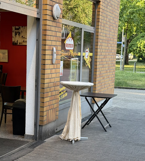 Sehr unschön ist das Ambiente in der Anna -Lauter Str. Oft wird das Café zugerammt mit vollen Paletten usw.