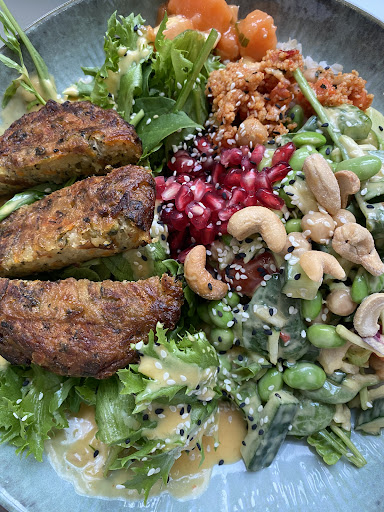 Wir können die sehr guten Bewertungen leider nicht nachvollziehen. Als wir ankamen, war kein Personal im Restaurant- saßen draußen und gingen nur hinein, wenn jemand kam. Die Bedienung war sich bzgl. Zusammensetzung der Bowls sehr unsicher, auf Nachfrage, ob der Lachs roh sei, sagte er ja. Aber der Lachs liege auf etwas Eis und außerdem habe er ihn noch in die Mikrowelle gelegt???? Lachs aus der Mikrowelle? Als ich aufs WC (Frauen/Männer gemeinsam) wollte und die Tür öffnete, stand genau diese Servicekraft pinkelnd vor mir- er hatte es nicht geschafft abzuschließen. Es gab auch kein Papier o.ä. zum Händetrocknen. Auch die Tische waren nicht abgewischt, die Zutaten sahen teilweise aus, wie wenn sie schon seit gestern daliegen würden. Manche Zutaten aus der Karte waren gar nicht vorhanden, wie z.B. Garnelen. Beim Salat wurden die letzten Blättchen zusammengekratzt und die Radieschenscheiben waren schon bräunlich verfärbt....Wir werden definitiv nicht...