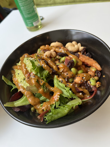 Ich habe mir meine Bowl jeweils selbst zusammengestellt – die Auswahl an frischen Zutaten und Toppings ist wirklich groß. Die Portionen sind sehr großzügig – obwohl ich viel esse, war ich beide Male richtig satt. Sowohl innen als auch draußen gibt es ausreichend Sitzplätze, falls man vor Ort essen möchte.
