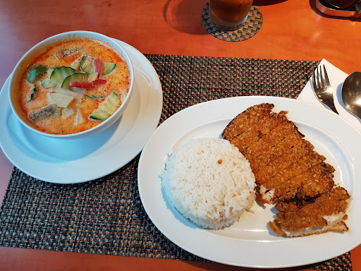Read moreWaren dort am Samstag schon etwas zeitiger gg. 18.00h dort da ein Konzert im Anschluss schon gg.19.30h anfing , das Lokal war daher noch leer , füllte sich dann aber bei Aufbruch . Die Bedienung war mega freundlich , hat sich viel Zeit genommen da meine Freundin einige Allergien hat und immer angeboten das man bei der Herstellung auf diese Stoffe, respektive Zutaten verzichten kann, das ist schon mal ein Beweis das alles frisch zubereitet wird. Ich hatte ein rotes Curry mit Entenbrust. Das war mega lecker und absolut authentisch und auch wirklich grosszügig portioniert , man hat es für mich auf meinen Wunsch hin auch extra scharf zubereitet , und mir dann noch frische Chilis in Fischsauce separat gereicht für den Fall das es nicht scharf genug wäre . ( War es zwar aber ich habe die Chilis trotzdem weg bekommen:-) ) Der selber gemachte Eistee war extrem lecker, musste den probieren ( ich hatte ein grosses Bier). Das Ambiente ist für ein Thai Restaurant zwar sehr schlicht gehalten , ist mir persönlich aber lieber als das überladene sonstige von sonstigen Asia Flat Rate Buden kennt. Also Rotleder , schwarzes Holz , weisse Plastikk und Goldzeug Staubfänger gibt's da also nicht. Küche komplett thailändisch authentisch, die haben sogar Köche aus Thailand herkommen lassen. Ich hab noch etwas mit der Chefin dort gesprochen, die mir das erzählt hat. Fazit : Kann ich nur weiterempfehlen, würde ich in Karlsruhe wohnen wäre das mein Stammasiat. Das nächste Mal probiere ich den Tintenfisch. Ach ja wir waren satt und zufrieden und das ganze für a. 50 Euro mit 2 Vorspeisen. Das sucht man im Dreiländereck bei uns vergeblich , wir haben leider nicht mal reine Thailändische...