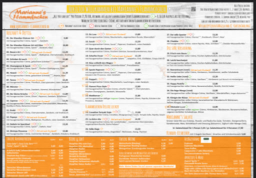 It's a little hard to find the restaurant but it's worth the effort. Recommended to pre-book using their online system although if you just give them a call your chances of finding a table increase. The all-you-can-eat option is definitely one to go for, if you can eat more than two flammkuchen by yourself. We were two people and we were told we can order two menu options at a time which came in a half-half flammkuchen. Flavor-wise, everything was great! Also, all flammkuchens arrived rather fast so we had very little down time between flammkuchens. You could of course ask for a small pause, we just didn't. I agree with some of the other reviews that said the choices were slightly limited. I have been to other all-you-can-eat flammkuchen places and there the menu was triple the size of that in Marianne's. Nonetheless, good food, good atmosphere (extra clean bathrooms!), good service....