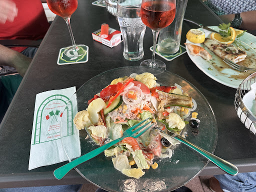 Zu teure Preise für nicht so gute Qualität. Salat 6,50 E ne Frechheit. Salat war nicht richtig sauber. Und für 6,50 E sieht ein italienischer guter Salat anders aus. Es fehlten gute italienische Tomaten ,Oliven, Käse. Es fehlten gute italienische Gewürze. Also das mit dem Salat ist fremdschämend. Vor allem schaut man, dass der Salat sauber ist. Und lässt nicht noch bräunlich Blätter dran. Da zahlt man in machen Restaurants die Hälfte weniger und bekommt ne tolle sauber gute Qualität. Der Salat bestand aus einer Wassertomate und überwiegend billigem Eisbergsalat mit bräunlichen Blättern mit einem faden Mayodressing, wir mussten nachwürzen. Normalerweise bekommt man Dressing mit Olivenöl und Balsamico beim Italiener! Im Biergarten roch es nach Benzin, das ist nicht sehr angenehm beim Essen.Der Hauptgang naja Pizza war soweit gut. Nur von Nudelgerichten ist abzuraten, zu teuer und Sauberkeit naja. Espresso kann man trinken auch das Bier soweit gut. Service naja. Auch hier fehlt es bisschen an Hygiene und Freundlichkeit. Ich frage mich auch, ob das richtige Italiener sind. Eher Fake Italiener! Fazit: Ich rate dem Geschäftsinhaber zu schauen, dass er die Preise runtersetzt und sauberer und freundlicher Auftritt zumindest sein Personal. Ich zahle gern einen guten Preis fürs Essen, wenn es auch gut ist. Denn wer aus Italien stammt, würde in diesem Lokal nichts essen. DER WÜRDE SOFORT WIEDER GEHEN. Da koche ich besser und sauberer. Und meine italienischen Bekannten würden nur mit dem Kopf schütteln. Und die Bewertungen sehen hier auch nicht rosig aus. Leute, die keine Ahnung vom Essen haben, essen natürlich auch alles. Und essen auch unsauber und ungesund. Wir empfehlen das Lokal nicht. Meine Kritik soll hier als Hilfestellung dem Inhaber dienen. Vielleicht nimmt man sich die Kritik zu Herzen. Solange es so ist wie zuvor, werden wir das Lokal nicht empfehlen Und kein zweitesmal besuchen. ZU TEUER ! UNSAUBER !...