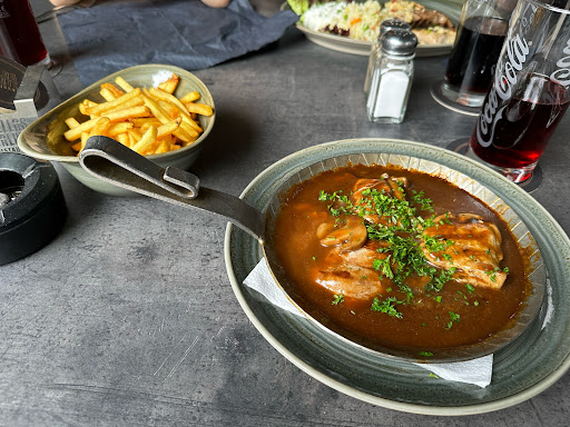 Read moreDa dachte man zum Muttertag lädt man die Mutter zum Essen ein. Guter Gedanke aber schlechte Lokalwahl! Am Anfang erstmal selbst etwas im Biergarten umgebaut damit die Mutter mit dem Rollstuhl einen Platz zum Essen am Tisch hat. Fünf Personen bestellten fünf Essen. Rinderleber und Gyros Spezial als Alternative wurde anstatt Pommes die Bratkartoffeln angeboten und bestellt. Dazu zwei Pizzen und einen italienischen Salat. Zuerst kamen die Beilagensalate zu den Fleischgerichten. Anschließend kamen beide Fleischgerichte mit Pommes Chips und nicht, wie bestellt, mit Bratkartoffeln. Man fängt an zu essen damit es nicht kalt wird und zwei Pizzen und der italienische Salat werden bestimmt gleich kommen. Weit gefehlt wie wir feststellen mussten. Die beiden Fleischesser hat inzwischen gespeist und von den anderen Essen nichts zu sehen. Bedienung drauf angesprochen, gab es die Rückantwort "Pizzabäcker sind überfordert". Nach mehrmaligem Nachfragen kam die Antwort "Pizzen sind grad im Ofen". Es vergingen 45!!! Minuten nachdem die beiden Fleischesser fertig waren mit essen bis die Pizzen im Ofen landeten. Der italienische Salat habe ich nicht vergessen, andere wohl schon. Der Salat und die Pizzen wurden dann eine Stunde nach den Fleischgerichten gebracht. Der Hunger vor Ort war vergangen und es wurde drum gebeten, dass die beiden Pizzen (mit sehr wenig Belag) und der italienische Salat bitte zum Mitnehmen verpackt werden sollen-wenigstens dies hat funktioniert! Die Rechnung von knapp 100 Euro zu begleichen war nicht einfach. Drei Versuche und am Ende hat die Zuordnung doch nicht gestimmt, da ist es einfacher alles zusammen zu zahlen OHNE Trinkgeld. Faustregel in allen Restaurants für mich mindestens 10%, WENN der Service passt. Für die ganzen Unannehmlichkeiten wurde uns wenigstens pro Person ein Ouzo angeboten. Ich habe DANKEND abgelehnt und überlegt, ob ich bei "verstehen Sie Spaß" bin. Ein Ouzo den grundsätzlich jeder Gast erhält als "Wiedergutmachung"-ohne Worte! Alle Sachen gepackt und was wurde da inzwischen mitten in den Fahrweg vom Rollstuhl gebaut, einen weiteren Tisch und somit war die Ausfahrt vom Platz zum Ausgang auch nicht mehr vorhanden. Über Umwege und mit Mehraufwand durften wir den Biergarten verlassen und dies für immer aus unserer Sicht!!! Mehr "no go's" gibt es nirgends als hier-lassen Sie sich...