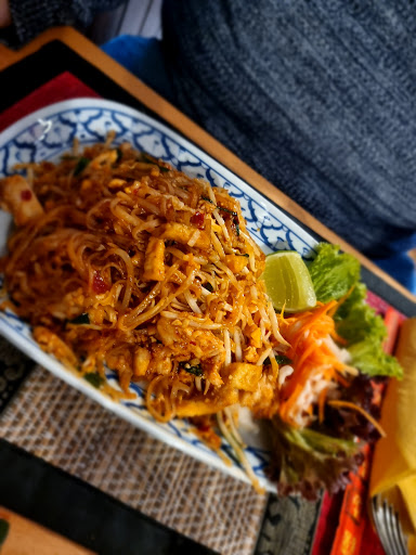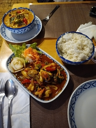 Aufgrund der positiven Bewertungen wollten wir dieses Thai-Restaurant ausprobieren. Wir kamen gegen 12:15 Uhr in das leere Restaurant nur in der Ecke neben der Tür saß ein älterer Mann und wickelte Besteck in Papierservietten. Kein "Hallo" kein "herzlich Willkommen". Wir waren aber weniger über den ungepflegten "Serviettenwickler" schockiert als über die Location an sich. Es sieht dort aus wie in einer heruntergekommenen Bierhalle. Das hat mit einem guten Thai-Restaurant so viel gemeinsam hat wie der Eifelturm mit Alaska. Das Ding könnte genau so gut "Thorstens Trinker Treff" heißen. Aber wir waren ja wegen dem Essen da und nicht wegen der Einrichtung... Als dann der Mann aus seiner Ecke aufstand und uns wortlos die Speisekarten auf den Tisch gelegt hat, wurde uns klar, das ist der Wirt! Die Preise sind happig, fast 17 €z.B. für Ente mit Gemüse und die Getränkepreise sind eine Frechheit. Siehe hierzu die Bilder anderer Gäste von den Speisekarten. Beim Bestellen wurden uns vom Wirt erzählt, dass er nicht wie alle anderen Thai-Lokale auf Convenience-Produkte setzt, sondern auf frische Produkte. Nun ja , ich denke, dass man das bei den Preisen ja auch erwarten kann. Das Essen kam und wir waren von der Präsentation und vom Geschmack enttäuscht. Ohne die für Thai-Kühe übliche geschmackliche Raffinesse kamen unsere Speisen mit der Satz "wenn Ihr noch extra Reis wollt - melden" auf den Tisch. Wir wurden auch später weder gefragt ob wir zufrieden sind noch ob wir noch etwas benötigten.