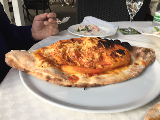 Read moreEmpfang und die Frage nach einem Tisch im Schatten bei brütender Hitze im Außenbereich wurde salopp missverstanden und nach 10min warten, dann doch umgesetzt. Alle freien Tische waren reserviert, aber nur zur Sicht für neue Gäste damit man denken sollte das Restaurant wäre stark frequentiert. Bestellung: drei Pizzen ein Beilagen Salat drei Große Getränke eines mit Zitrone. Zitrone lag im Glas und wurde nicht aufgesteckt, sie hatte Kerne die fast verschluckt worden sind. Bestellung des Essens kam innerhalb von 20-25min, Salat schon nach 10min. Salatsauce nach Sicht und Geschmack gärend. Bei der bestellten vier Käse Pizza, fehlte der TomatenSoßen Belag voll und ganz, ausserdem schmeckte der Käse so versalzen als dass man denken sollte die verschiedenen Käse-Sorten wurden überlagert oder es wurde minderwertige Qualität benutzt. Bei der Pizza Salami war die Salami, das Beste an der ganzen Pizza an sich. Tomatensoße war gut vorhanden. Die Pizza mit Artischocken, die Artischocken waren sehr holzig. Hier war auch Tomaten Soße drauf. Bei allen Pizzen war der Teig auf jeden Fall zu mehlig auf der Unterseite und die Krume nicht Kross und Knackig wie es bei einer Pizza sein müsste - beim Biss am zusammen kleben, das bedeutet (keine Porung) dass der Teig eine lange Lagerzeit hinter sich hatte und nur am rumliegen war (evtl. zuviel Teig hergestellt). Beschwerden: Abends schon Magenschmerzen, Bauchkrämpfe, Blähblauch und braunes Gewitter. Es wurde nichts anderes gegessen an diesem Tag. Preise waren über dem Standard viel zu hoch.