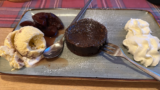 Service: Der Service war nett, sowohl der Herr als auch die Frau die bei uns an den Tisch kamen, waren aufmerksam und bemüht, aber auch nicht um einen spaßigen Spruch mit den Gästen verlegen. Das macht man dort schon sehr gut. Essen und Trinken kamen schnell am Tisch an, die Küche scheint gut organisiert. Wir waren an einem Sonntag dort und es gibt wohl auch nach 14 Uhr noch warme Küche. - 4/5