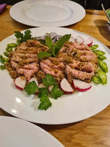 The menu offers a good variety of traditional dishes, from mezze plates to grilled meats, making it a great spot for both sharing-style dining and individual meals. The ingredients taste fresh, and the flavors are well-balanced, with rich spices and textures that highlight Lebanese cuisine.