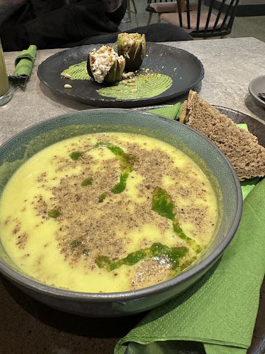 Read moreDa ich überwiegend vegan esse und meinen Kollegen von den verganen Restaurants in Berlin vorschwärmte, schenkten sie mir einen Gutschein über 60 Euro für Verde zum Geburtstag um mir zu zeigen, dass es in KA Vergleichbares gibt. Gestern war wir da. Das Essen war wirklich gut (wenn auch nicht ganz außergewöhnlich gut), aber der Service ungewöhnlich. Die Servicekraft, evtl. die Inhaberin, war im Ton sehr freundlich, aber unkonzentriert, fahrig und uninteressiert. Zunächst dauerte es verhältnismäßig lange, bis wir bestellen konnten, das lag aber irgendwie noch im Rahmen und passte zur Atmosphäre. Das Essen kam dann schnell. Als ich ein weiteres Getränkt und ein Spaghettieis zum Nachtisch bestellt hatte, passiert zunächst nicht. Nachdem ich dann aufstand und nachfragte, stellte sich heraus, dass dies vergessen worden war (es waren insgesamt 8 Personen im Lokal). Das Getränk kam dann sofort, das Eis nicht. Ich kämpfte mit mir, noch einmal aufzustehen, als es dann aber doch kam. Das Eis schwamm in einem "See" und hatte offenbar länger gestanden. Auch das war noch o.k. da das Eis wirklich gut war und es offensichtlich war, dass irgendwas Außergewöhnliches sein musste, weil die Bedienung auch ständig am Handy hängte. Als wir fertig waren und zahlen wollten, gingen wir selbst zu Kasse, weil wir nicht noch einmal warten wollten und gaben unseren Gutachein ab. Jetzt bezweifelte die Bedienug die Höhe der Summe, weil sie meinte die handschriftlich eingetragenen 60 Euro könnten manipulierte 50 Euro sein. Der Gutschein hatte eine Nummer und einen QR Code. ich meinte, ich sei eher sicher, dass es 60 Euro sei, weil das die Summe ist, die bei uns im Büro für Geburtstage die Regel ist, bot ihr aber an, doch kurz zu prüfen. Darauf wurde nicht der QR Code eingegeben, auch nicht die Nummer, sondern es wurde in der Kassen nach dem Datum des Gutscheins gesucht, völlig unbeholfen, so dass wir mehrere Minuten beiseite stehen und zusehen mussten, wie der Laden, der einem von ihm selbst ausgestellten Gutachtschein anzweifelte, es nicht hinbekam, die Gültigkeit zu prüfen. Als es dann geklärt war, war die Antwort nur "Ah, alles gut", wobei ihre Erleichterung sich offenbar darauf bezoge, den Gutschein dann doch in der Kasse gefunden zu haben. Als ich dann deutlich machte, dass ich jetzt davon ausgehen, dass ich das Rückgeld für das Trinkgeld gernze zügeig haben wollte, bedanke sie sich für meine Geduld. Ich gehe beruflich oft essen, habe aber selten einen Menschen in der Gastronomie erlebt, der so wenig Empathie für das hat, was er da tut. Heinrich...
