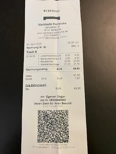 Das Ambiente? Nun, es ist eher schlicht und geradlinig gehalten – passend zum Namen des Lokals, der „Werkbank“. Geschmackssache, wie man so schön sagt. Für mich stand jedoch das hervorragende Essen im Vordergrund, und da gab es nichts auszusetzen.