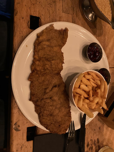 Ich wählte das Wiener Schnitzel, das einfach perfekt war – zart, goldbraun gebraten und begleitet von einer hausgemachten Bratensauce. Ein echter Genuss! Der dazu gereichte Salat war eine wahre Überraschung: Frisch, raffiniert und mit eingelegtem saurem Rettich, den ich so in dieser Form noch nie probiert hatte. Die Kombination war außergewöhnlich und einfach hervorragend mit hausgemachtem Dressing.