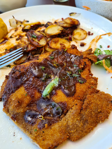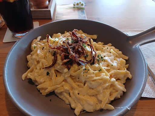 Read moreDas Essen war nicht gut. Wir mussten über eine Stunde warten bis das Essen kam., Meine Schwester hat ihr Essen zum Schluss nach langer Zeit bekommen. Ich hatte Hähnchenstreifen mit Champignonrahmsoße und Spätzle. Es waren genau 4 Hähnchenstreifen. Die Spätzle waren kalt und matschig. Die Soße hat nur nach Pfeffer geschmeckt. Meine Mutter und mein Schwager, hatten saure Leber mit Bratkartoffeln. Die Bratkartoffeln waren in Fett getränkt und sahen aus als ob sie schon mehrmals gewärmt wurden und die Leber war wie Gummi. Meine Schwester hatte Sauerbraten mit Serviettenknödel und Rotkraut. Das Fleisch war zäh und das Rotkraut war süß und hat nur nach Zimt geschmeckt. Die Serviettenknödel hatten eine getrocknete Haut, als ob die Scheiben unabgedeckt zuvor gelagert wurden. Mein Neffe und die Frau hatten je einen Burger mit Pommes. Das Brötchen war verbrannt und bröselig, das Hähnchen beim Hähnchenburger war paniert, schwarz und staubtrocken. Einfach alles nicht genießbar. Ein Mal und nicht wieder. Die Ambiente ging, ausser das meine Schwester den direkten Blick aufs Männerklo hatte. Die Tür stand immer offen und man konnte sehen, wie die Männer da standen und pinkelten. Die Bedienung war super! Sie war sehr freundlich und machte ihren Job perfekt, obwohl sie für den Service ganz alleine war, an einem Samstagabend. Ich würde mir wünschen, dass es noch mehr solche...