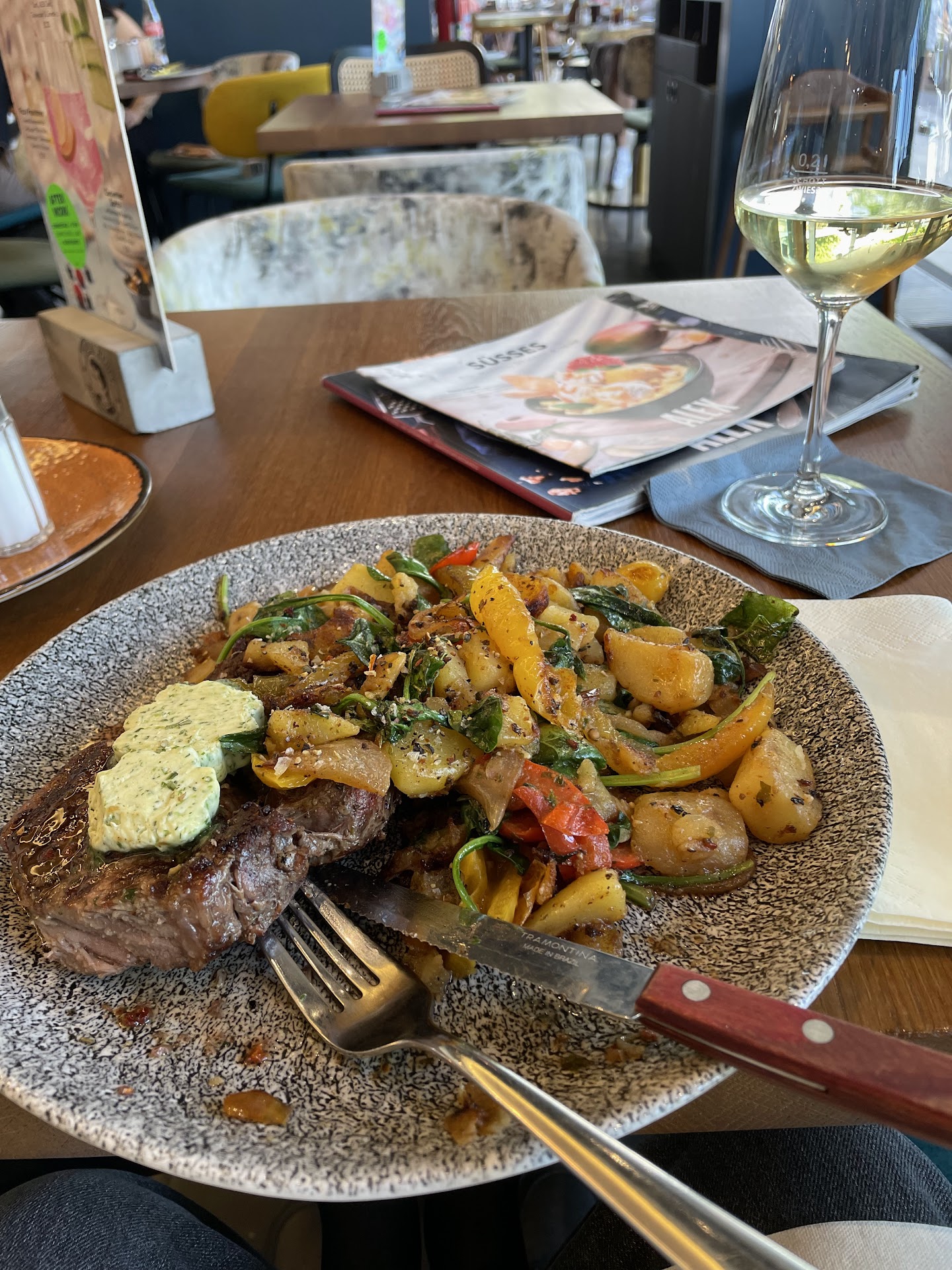 Beim Betreten des Cafés hat unser Hund plötzlich Angst vor einem Mitarbeiter bekommen. Er ist erschrocken, hochgesprungen und wollte flüchten. Das Ganze hat nur ein paar Minuten gedauert – dann hat sich der Hund beruhigt, und es war wieder alles in Ordnung. Wir haben uns hingesetzt, Essen und Getränke bestellt und ganz normal auf unser Essen gewartet.
