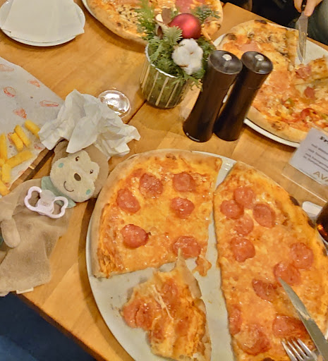 Read moreIch kann die schlechten Rezensionen nicht verstehen. Es war für einen Samstag sehr voll, aber verständlich, da der Weihnachtsmarkt direkt vor der Tür ist. Trotz extremen Andrang, haben wir direkt einen Platz bekommen. Kindersitz gab es auch. Die Kellner waren alle nett. Der Tisch wurde sofort, nachdem wir uns gesessen haben gewischt, die Karten gebracht. Für meine kleine gab es leider keine Pommes, hab extra nachgefragt, die Kellnerin war sehr nett und meinte, "wenn es für die kleine ist, dann bestellt die Pommes vom Laden nebenan, ist völlig in Ordnung." Haben drei Pizzen bestellt, mussten nicht sehr lange warten. Da wo wir saßen, hatten wir auch Blick in die Küche. Pizzen sind selbstgemacht, sehr groß und sehr lecker. Bis jetzt war die beste Pizza meines Lebens die in Offenbach bei Pizzeria am Markt, aber die war genauso gut. Generell hat es dort sehr gut geduftet. Dafür, dass es so voll war, waren die Kellner sehr schnell. Gut unsere Kellnerin hat mir statt einer großen Cola eine kleine gebracht, aber mein Gott, dass kann passieren. Hab nichts gesagt, da ich auch die lange Schlange an den WCs gesehen habe. Einige größere Gruppen mussten etwas länger warten, aber sobald was frei wurde, wurden geschaut, dass die wartenden einen Platz kriegen. Manchmal standen einige Kunden leider im Weg der Kellner, wenn sie auf einen Platz gewartet haben. Sorry, aber man muss doch nicht den Weg versperren, teilweise haben die Kellner Unmengen von Geschirr die sie hin und her tragen müssen. Alles in allem, sehr gute Pizza,...