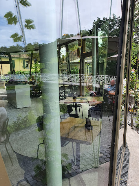 Read moreSehr schönes Ambiente im und um das Café herum. Die Kuchenauswahl ist sehr groß, leider gibt es keinen einzigen veganen Kuchen, was sehr schade ist in Anbetracht dessen, dass das Image ansonsten eher so wirkt, als wolle man umweltbewusstes, regionales, teils biologisch angebautes Essen bevorzugt anbieten. Zum Glück gibt es Hafermilch für Kaffeespezialitäten, die auch sehr gut sind (es wird guter Kaffee verwendet). Donnerstags beim BBQ gibt es einen Burger mit veganem Patty, der komplett als vegan gekennzeichnet ist, allerdings wird als Dip Grüne Soße serviert und ob die Soßen auf dem Burger vegan sind, weiß ich auch nicht. Hier müsste man entweder die Kennzeichnung ändern oder - noch besser - den Burger (so wie es auf der Karte steht - auch Stichwort: Allergene!) komplett vegan anbieten und demenstprechend Zutaten ändern.