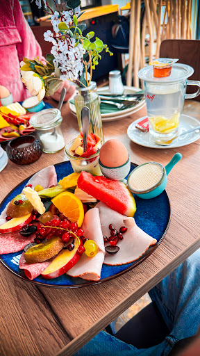 Wir waren zu viert an einem Sonntag zum Frühstück dort und hatten einige Tage vorher einen Tisch reserviert, womit das Lokal dann auch ausgebucht war. Es gibt viel Auswahl beim Frühstück, und es ist sowohl mit Liebe zum Detail dekorativ angerichtet, als auch umfangreich, vielfältig und mit frischen Zutaten zubereitet. Kaffee ist im Preis nicht inbegriffen, aber der Preis war trotzdem insgesamt in Ordnung.