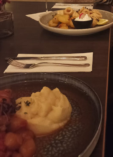 Das Essen fanden wir lecker, mit nur wenigen Kleinigkeiten bei denen man meckern könnte. Am meisten zu empfehlen ist meiner Meinung nach die Lammhaxe. Es hatte sehr zartes und saftiges Fleisch, aber ich konnte die vielen Bohnen nicht aufessen. Bei dem Grillteller war der Gyros etwas trocken, aber dafür waren der Tomatenreis und die Frikadellen sehr lecker. Bei den Kartoffeln als Beilage hat mir nur Schmand gefehlt, aber wegen der Soße war es trotzdem lecker. Die Kalbsleber ist etwas schwer für den Magen, aber sehr weich. Die Kalmare waren auch gut. Das Essen wurde sehr schön auf dem Teller ausgelegt. Man konnte auch mit den Augen essen.