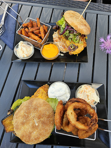 Wo soll ich anfangen. An diesem Nachmittag lief alles schief, was schief laufen kann. Wir (2 Personen) haben uns auf die Terrasse gesetzt und wurden nach den Getränken gefragt. Von den Getränken wurde eines falsch gebracht. Nicht schlimm, kann passieren. Wir haben daraufhin den Burger zum selber zusammenstellen bestellt. Nach über einer Stunde war noch nichts vom Essen zu sehen. Über den Nachbartisch haben wir mitbekommen, dass ein Tisch mit 13 Personen jeder einzelne einen Burger zum selber zusammenstellen bestellt hat und deswegen das Essen länger dauert. Mittlerweile haben sich auch die anderen Tische bereits beschwert über die langen Wartezeiten. Als nach 90 min immernoch kein Essen zu sehen war, wurde es bei den Gästen ungemütlich (extreme Wartezeit bei allen Gästen). Das gipfelte darin, dass ein Tisch einfach aufgestanden ist und gegangen ist. Von den Bedienungen hatten wir noch keine Infos bezüglich unseres Essens. Nach über 110 min kamen unsere 2 Burger. Wir hatten beide zwei unterschiedliche vegetarische Burger bestellt. Auf den ersten ist uns aufgefallen, dass beide Burger das gleiche Patty haben und sich sehr nach Fleisch aussehen. Auf Nachfrage ob das wirklich die vegetarischen Burger sind wurde dies 2 mal mit ja beantwortet. Nach probieren des Partty klar, es handelt sich um Fleisch. Nach Reklamation bei einer anderen Bedienung kam die Antwort, "ja das soll ja auch nach Fleisch schmecken". Nach Aufforderung es bitte mit der Küche abzuklären wurde dies getan. Nach weiteren 15 min Wartezeit kam der gleiche Teller mit kalten Pommes und dem gleichen Burger nur mit einem vegetarischen Patty. Kein Entschuldigung kein nichts. Das Patty war frittiert und man sieht auf den ersten Blick einen Unterschied zu einem Fleischpatty. Sowas darf einfach nicht passieren! Bei der Rechnung wurde uns auch keinerlei Rabatt gewährt oder sich entschuldigt und bei den Preisen auf der Karte war nicht ersichtlich, dass die 6 Pommes auf dem Teller noch 4,90€ extra kosten. In Summe war dies meine schlechteste Restaurant Erfahrungen jemals. Tipp an das Restaurant: Wenn euch 12 Burger Bestellungen von einem Tisch und einem halb vollen Restaurant so aus der Bahn werfen, dann gibt es da aus meiner Sicht 3 Optionen.