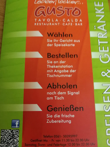 Read moreGusto in Kassel is a fantastic self-service Italian spot! The food quality was good, especially the Carbonara, which was great and highly recommended. It's easy to order, the environment is comfortable, and you can sit outside in summer. Prices are very reasonable. We wish we'd known about the extra menu, but we were too hungry to notice! Definitely a top choice for a delicious and affordable...