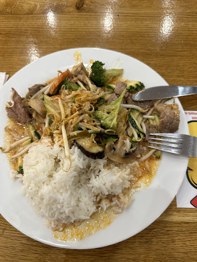 Read moreDer Reis ist nicht frisch gekocht, er scheint Tage alt zu sein und wurde nur wiederholt erhitzt. Knusprige Hähnchenstreifen sind schwer zu kauen. Auf meinem Essen war ein schwarzer Fremdkörper, den ich leider nicht fotografieren konnte, aber als ich das Personal darauf ansprach, haben sie sich nicht einmal entschuldigt! Sie haben einfach den Reis ausgetauscht und das war's. Wasser kostet 2,50 Euro, was für diese Art von Restaurant und Service extravagant ist. Die Kassiererin vergaß auch, mir meine Quittung zu geben, um die ich noch bitten musste. Eine unangenehme Erfahrung - das hätte ich nicht erwartet. Für authentisches asiatisches Essen sollte man...