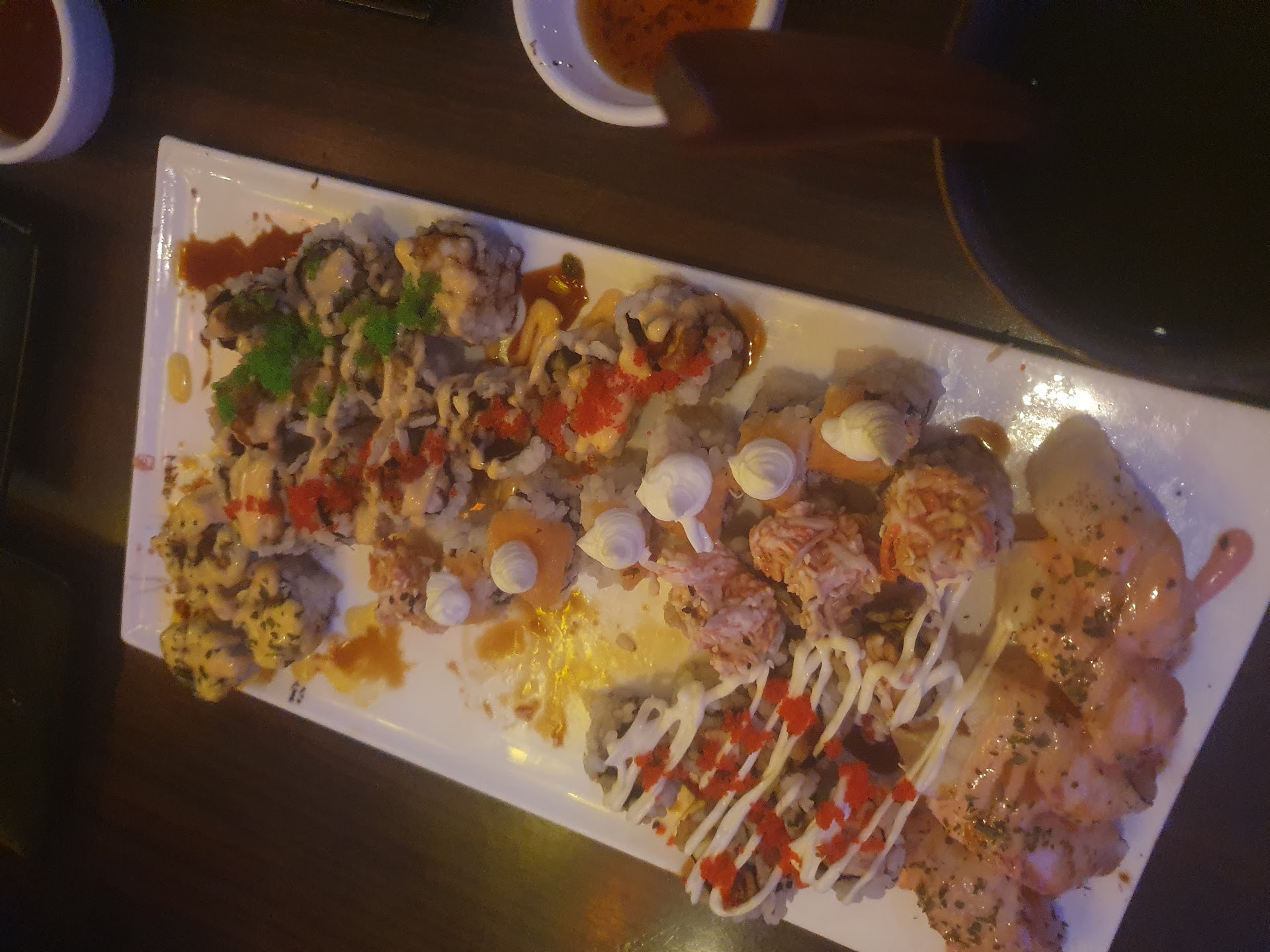 Negatives: -It's average fusion sushi that lacks flavor/style -Most dishes are overwhelmed with sauces to mask the flavor of the lower quality (this is a speculation based on taste and detected freshness) ingredients used. -Beef dishes were dry. -Flavour was average. -not healthy due to the composition of the dishes (sauce heavy) -Payment PayPal or cash only.