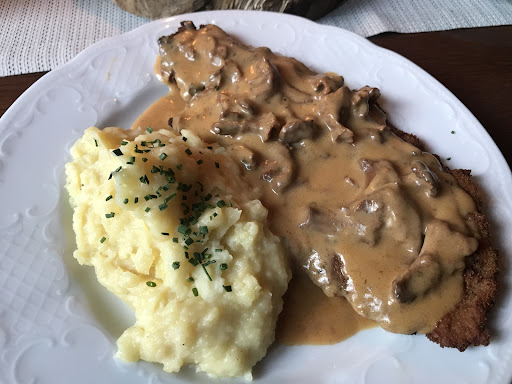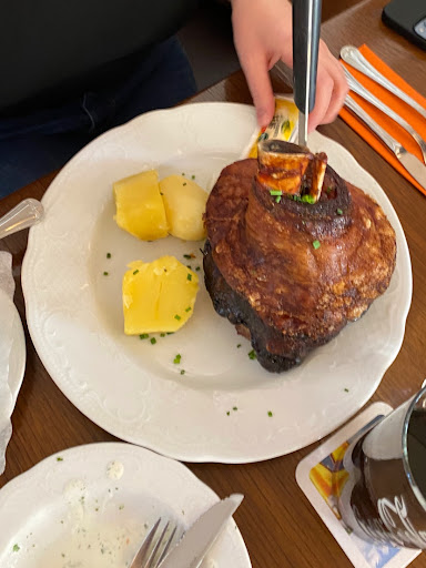 I ate the Schnitzel with Pfifferlinge Mushrooms and my partner had the Große knusprig gebratene Schweine-Haxe. They both tasted so good and came in really genourous portions in really good time. You can tell the food is really fresh and the chefs really care! For how good the food is, the price is so reasonable, it's so hard to find good food in London for such a good price. The waitress we had was really patient with my lack of German and really helpful, kind and made me feel really welcome. If anyone finds themselves in Kassel I would highly reccomend visiting Salburger Stuben. I want to go back once more...