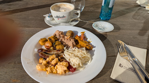 Weiterhin war die schlange zum Buffet so lang, dass man ungelogen gute 10-15 Minuten anstehen musste. Die Schlange zog sich zu allem übel auch mitten durch den Raum, dicht vorbei an Tischen mit essenden Gästen. Absolutes No-Go, meiner Meinung nach. Lokale wie das Cafe del Sol bieten Brunch und Frühstück an, sind brechend voll, aber wenigstens schaffen die es, dass es am Buffet schnell geht und niemand lange warten muss.