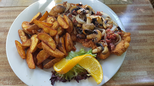 Wir besuchten das Restaurant mit einer größeren Gruppe und genossen das Schnitzelbuffet. Pro Tisch (10 Personen) wurde eine Platte mit 20 kleinen Schnitzeln, sowie fünf Körbchen Pommes und Kartoffelecken serviert. Jeder Tisch erhielt zusätzlich vier verschiedene Soßen ("Jäger", Schmand, Diabolo und Paprika), während als Vorspeise ein kleiner Salat gereicht wurde.