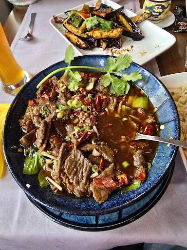 Der Reis war mega-lecker, fast schon der beste den ich je hatte! Nicht einfach nur pappig sondern gut gewürzt, mit ein paar Zwiebeln und Erbsen drin, hat auf jeden Fall gepasst! Wegen dem Eintopf war ich erst skeptisch. Ich wollte eigentlich keine Suppe mit Fleisch. Meine Frau hat mich dann doch überredet. Hab es nicht bereut, es war mega reichhaltig! Und super lecker, hätte für meinen Geschmack sogar noch etwas schärfer sein können, aber dennoch absolut top! Viel Gemüse drin und sehr viel Fleisch was gut durchgebraten war, sehr geschmackvoll zubereitet. Auch die anderen in unserer Familie waren zufrieden und am Ende total satt! Der Service war sehr gut obwohl es relativ voll war als wir dort waren, sehr aufmerksames Personal. Ambiete sehr schön, eben china-typische Deko, von außen wirkt es etwas unscheinbar, es liegt im ersten Stock, es wirkt ein bißchen wie ein Bürogebäude, im Treppenhaus zwei chinesische Ledersessel wo wahrscheinlich noch niemand gesessen hat aber das Restaurant selbst ist für meinen Geschmack absolut top! Preislich lag jedes Gericht so um die 15-18 Euro, aber für die Menge an Essen (haben die Reste noch mit nach Hause genommen) war es absolut...