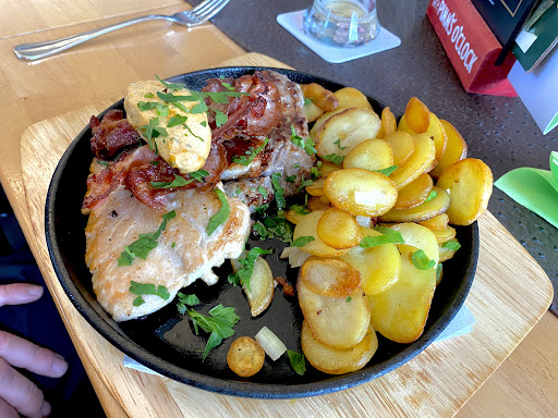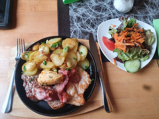 Read moreAuf Empfehlung eines guten Bekannten besuchten wir am Sonntagmittag zusammen mit Freunden die uns zu einem runden Geburtstag eingeladen hatten das Restaurant. Wir hatten reserviert und bekamen einen schönen Tisch. Mach Aufnahme der Bestellung , warteten wir 75 Minuten und bekamen nichts. Wir hatten dann höflich nachgefragt und uns wurde mitgeteilt, dass es sonntags schon mal 45 Min dauern kann. Dann stellte sich heraus, dass man uns vergessen hat. Es wurde sich entschuldigt und wir bekamen danach ziemlich zügig unsere Essen . Es waren 2 Käseschnitzel die oben drauf schwarz waren und dazu total harte trockene Pommes. Dann ein Schmandschnitzel welches leider keinerlei Gewürz hatte und ich ein Putensteak mit Tomate und Käse überbacken. Nach dem Verzehr des ersten kleinen Stückes vom Rand aus musste ich leider feststellen , dass das Geflügelfleisch innen roh war. Ich rief die Bedienung und gab das Essen zurück. Ich wollte auch kein neues haben weil mittlerweile 2 Stunden vergangen waren. Das Essen wurde uns dann auch nicht berechnet und wir bekamen alle 4 einen Espresso als Entschädigung. Eine nette Bedienung, welche glaube ich, die Chefin war, kam dann extra noch zu mir zum Tisch und hatte sich höflich entschuldigt. und bit mir Kuchen an, den ich aber ablehnen musste, weil ich zuhause um 15 Uhr jemanden erwartete. Daraufhin bot Sie an beim nächsten Besuch ein Essen gratis zu bekommen. Das war sehr nett. Wir mussten jedoch feststellen, dass alle anderen Speisen, die nach uns rausgetragene wurden viel besser aussahen. Man konnte erkennen, dass die Pommes goldbraun waren und nicht wie unsere trocken und dunkel. Alles in Einem finde ich es sehr schade . Trotzdem werde ich das Lokal wahrscheinlich nicht mehr besuchen, weil mir das kleine erste Stück, bei dem man noch nicht sehen konnte, dass der Rest innen roh ist, bis abends unangenehm im...