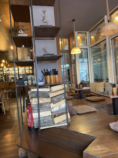 Die Bedienung war wirklich sehr sehr freundlich, die Wartezeiten waren sehr angemessen und das Ambiente hat mir auch sehr gut gefallen, gut ausgeleuchtet, angenehmer Abstand zum Nachbarn und schöne Wandbilder.