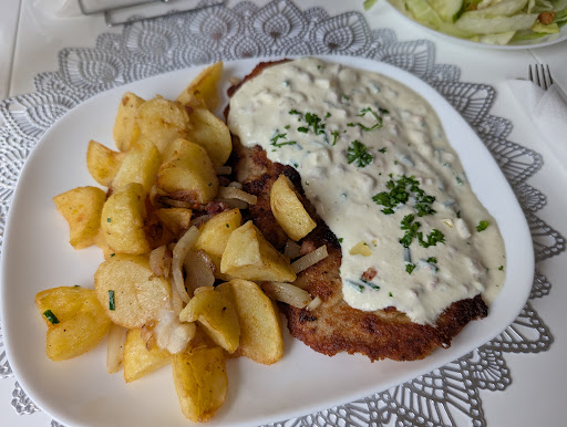 Read moreGans nicht empfehlenswert! Hätten wir vor Wochen hier nicht gut bürgerlich gegessen, hätten wir 0 Sterne vergeben. Begründung: wir hatten vor 2 Wochen, Corona-bedingt, 7 Speisen zum abholen bestellt. Davon waren 6 Portionen Gans. Die bestellten Essen waren nicht zur vereinbarten Zeit fertig. Als wir die Gänse zu Hause auspacken, hat es mir und meiner Frau die Sprache verschlagen. Die Gänse, Brüste wie Keulen, hatten keine Haut und sahen gräulich und unappetitlich aus. Die Gänse, sowie der Salat, waren ungewürzt/geschmacksneutral! So etwas sollte die Küche nicht verlassen! Die Beilagen waren ok. Vom Gesamtpaket waren wir enttäuscht und im Restaurant hätten wir dies zurück...