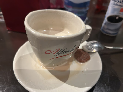 Als Ersatzgericht bekam ich ein Schnitzel, das immerhin gut geschmeckt hat. Parallel hatte ich einen Cappuccino bestellt, der jedoch alles andere als ein Cappuccino war: Lauwarmer Kaffee ohne Schaum, randvoll eingeschenkt, sodass die Untertasse überlief und der beigefügte Keks völlig aufgeweicht war.
