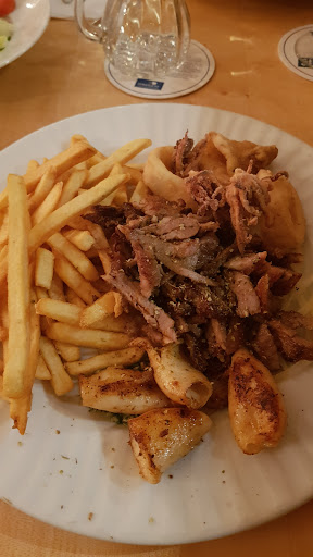 Read moreAußen pfui innen hui. Nichts desto trotzhätte man nicht gewusst gewusst dass wir beim Griechen essen sind. Die Freundlikeit fehlt total, die Speisekarte sowie alles andere wird, so locker flockig, auf den Tisch geworfen. Man wartet schon ne Zeit auf die Getränke und ewig auf die Vorspeise (die mit dem Hauptgericht zusammen kommt) und die Hauptgerichte. Wir hatten für jeden eine Pita bestellt, zwei mit Knoblauch eine ohne. Die kamen geviertelt quer übereinander gelegt mit dem Knoblauch extra. Es sah auch so aus als ob sie sich einige Stückchen "gespart" hätten. Hab sie nicht nachgezählt,weil ich nur Hunger hatte. Das Essen liegt nicht schön "angerichtet" mit nem Klecks Zaziki und Olive auf dem Teller, sondern die Bratkartoffeln, die frittiert werden, fast vermischt mit dem Reis mit Karottenstücken , die Hackfleischröllchen waren total ausgetrocknet und geschmacklos, das Gyros sah aus wie Hagelkörner, der Fleischspieß war allerdings sehr gut. Beim Salat fehlte auch die sonst überall übliche Olive, auch dort vermissten wir beim Dressing den Geschmack dafür war irre viel Essig dran. Nen Ouzo bekommt man während des Essens, wenn gerade Zeit ist. Ich denke die zwei die für den Service und Getränke zuständig sind, sind für das komplette Lokal heillos überfordert. Wir bekamen einige Gäste mit die weder mit dem Service noch der Küche zufrieden waren. Wir und einige andere kommen dadurch bestimmt nicht wieder. Schade, man könnte so viel machen in so nem hübschen Ambiente, wenn man genügend ausgeglichene Personen mit Kellnerkleidung einstellen würde. So sah es aus als wären die beiden gerade vorbei gekommen und würden schnell mal aushelfen, mit T-Shirt und Hose. Ist ja okay wenn alle die gleichen Shirts und Hosen haben. Resümee: keine...