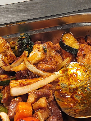 Ansonsten gibt es das normale chinesische Buffet über gebratene Nudeln bis hin zu mit Käse überbackene Muscheln, Salat und eine große Auswahl an Kuchen und Desserts. Pudding, Tiramisu usw.