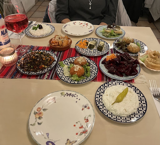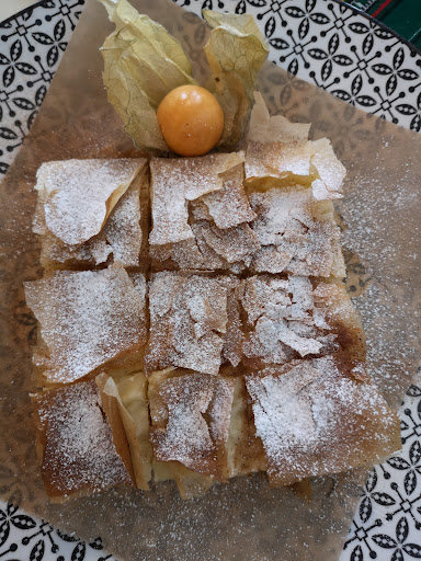 Read moreUm die Vielfalt zu testen, hatte ich einen Grillteller bestellt, bestehend aus zwei Spießen aus Schweinefleisch, einem besonders leckerem Hacksteak und einer Rinder(!)-Leber! Exzellent gegrillt! Die Leber war exzellent gepunktet, allerdings die Spieße etwas trocken. Da wäre Ketchup unbedingt nötig. Dazu gab's ganz ganz leckere Bratkartoffeln und wunderbar abgestimmten Reis. Der Koch hat auch etwas Olivenöl dazu gegeben, damit man eine Sauce verschmerzen kann. Der Preis für die übervolle Platte: 15,90 €. Sehr günstig. Dann hatte ich einen Nachtisch aus einem Gries-Quark-Ensemble mit Blätterteig und Puderzucker obendrauf: Ein Gedicht! Der Mocca dazu war exzellent, sogar mit Kaffeesatz, wie man es kaum bekommt.